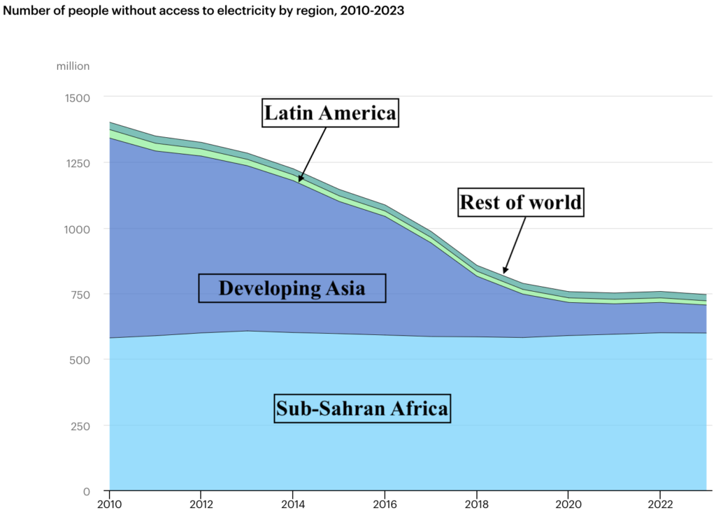 Notwithstanding, the global increase in electricity generation, approximately 750 million people still have no access to electricity. This is almost 50% fewer than in 2010 but still represents almost 10% of the global population. As the graph below clearly demonstrates, it is the developing nations of Asia that are wholly responsible for the increased availability of electricity in recent times. In an all-too-common story, the number of people without electricity in Sub-Saharan Africa is high and has even increased marginally since 2010.