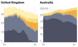 Many economically developed, industrialised countries (e.g. USA) have been generating much the same level of electricity for some time but decreasing their dependence on fossil fuels, particularly coal. The UK has reduced its electricity generation by almost a quarter over the last decade and has all but eliminated coal from the system. Australia continues to increase electricity generation steadily and has dramatically increased the use of renewables, particularly solar. Coal use has declined considerably but still produces about half of Australia’s electricity.