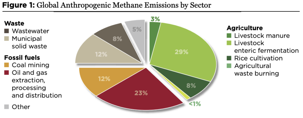 Anthropogenic methane emissions have been increasing for several decades, with livestock, fugitive emissions and waste being almost wholly responsible.