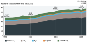 So, what does this particular graph demonstrate? That total GHG emissions continue to increase, as they have since 1990. Most notably, that emissions of methane and CO2 from fossil fuels are still increasing. That, with the possible exception of land use (LULUCF), no individual source of emissions has decreased during this period.