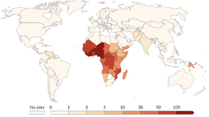 There are currently about a quarter of a million cases of malaria each year worldwide and about 600,000 deaths (1% of all deaths), mostly in Sub-Saharan Africa and mostly in young children.