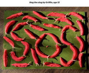 Almost 7,000 young artists submitted entries for the 2023 Australian Conservation Foundation’s Wild At Art competition. The competition gives young people the opportunity to draw attention to Australia’s threatened plants and animals. Griffin Hincksman was awarded first place in the Most Unusual Artwork category for his composition focusing on the giant Kaputar slug which … well, I’ll let Griffin himself tell you:
