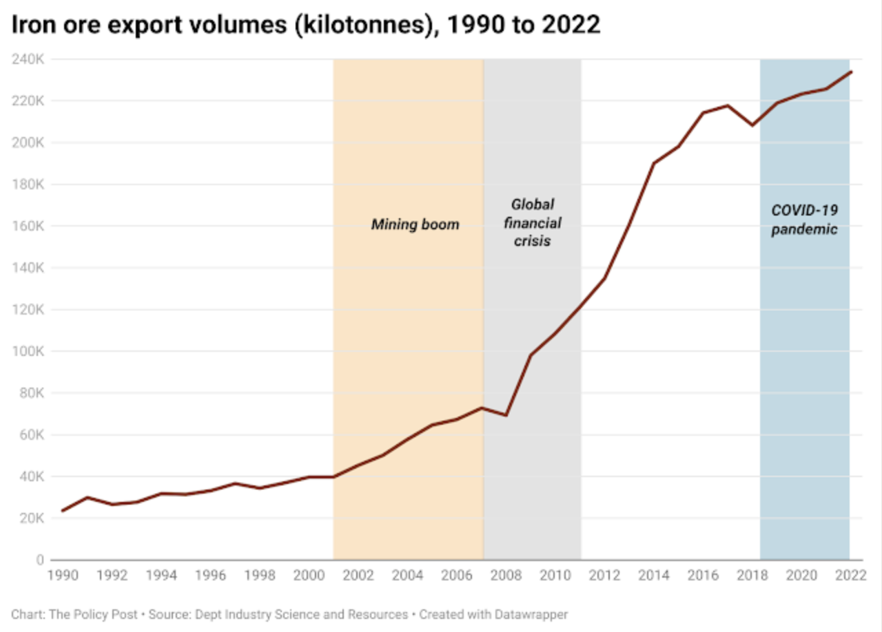 But prices were rising for one main reason: immense demand, and not only from China. Companies ramped up production and shipped vast amounts overseas. Although prices temporarily fell when a commodities boom ended during the Global Financial Crisis, there was barely a hiccup in export volumes.
