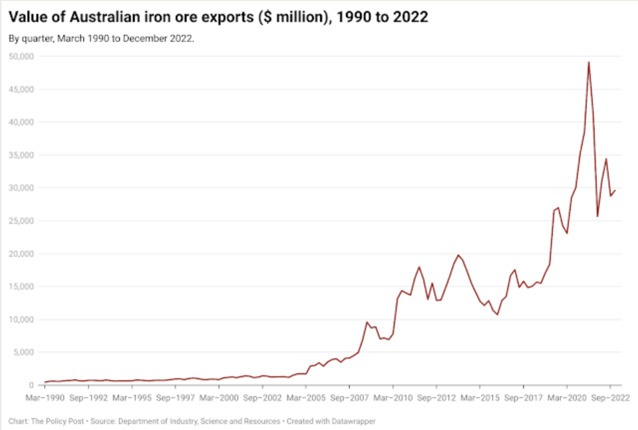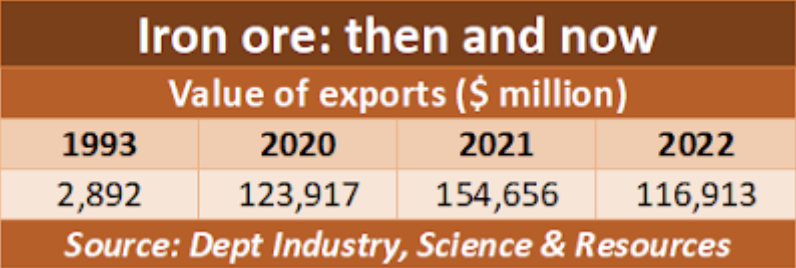 In the June quarter of 2021 alone, the value of Australian iron ore exports reached $49 billion. Back in 1993, prices were good and the industry was profitable. It is a good deal more profitable now.