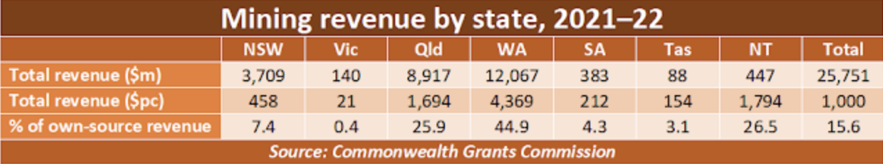 In 2021-22, the states obtained $25.7 billion in revenue, mainly from royalties, from the minerals industry. That’s concentrated in Western Australia and Queensland, but the GST system allows a redistribution of that between the states, on the basis that all Australians are entitled to an equal level of services.