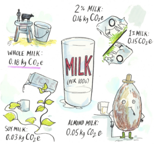 If you want to go one step further to reduce your emissions (your GHGs that is, not your eructations), replace cows’ milk with soy, oat or almond milk, although the production of almond milk requires a lot of water.