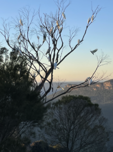 I’ve had three delightful moments in the natural environment this week. On Monday morning I came across an Australian fur seal* relaxing and feeding among the kelp (which wasn’t there a few years ago) at the entrance to Rushcutters Bay in Sydney Harbour. On Tuesday morning I shared a glorious sunrise with a crowd of noisy cockies at Echo Point, Katoomba in the Blue Mountains and then recorded a lyrebird, not seen despite being very close, going through its repertoire of songs and imitations. And on Wednesday morning I almost trampled on a pair of Superb Lyrebirds on a track less than two kilometres from Echo Point.