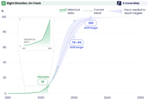 In readiness for last year’s COP meeting, the World Resources Institute assessed 42 indicators of progress towards keeping global warming under 1.5oC. Only one of the 42 was on track to meet its 2030 target: the share of EVs in passenger car sales. The recent increase suggests that EV sales have embarked on the s-shaped curve that is characteristic of a successful behaviour change.