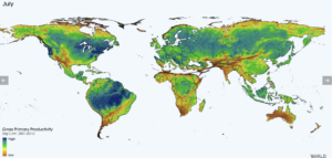 Gross Primary Productivity (GPP) is the total amount of carbon compounds produced by photosynthesis in a terrestrial ecosystem in a given period. It’s a reflection of the amount of solar energy captured. The carbon compounds support not just the plant that produces them but also other forms of life that feed on the alive or dead plant and so on up the food chain.