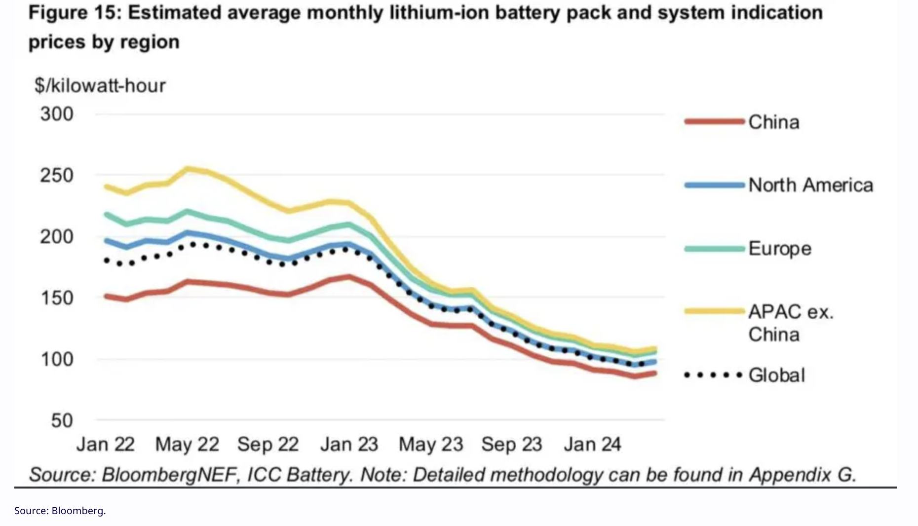 Battery storage, however, is benefitting from falling costs, with significant reductions in the cost of battery cells over the past year. It is now falling at the same rate as solar PV a few years ago, and while the cost of PV modules is also at a record low, battery storage is less encumbered by soaring civil construction costs as wind and solar.