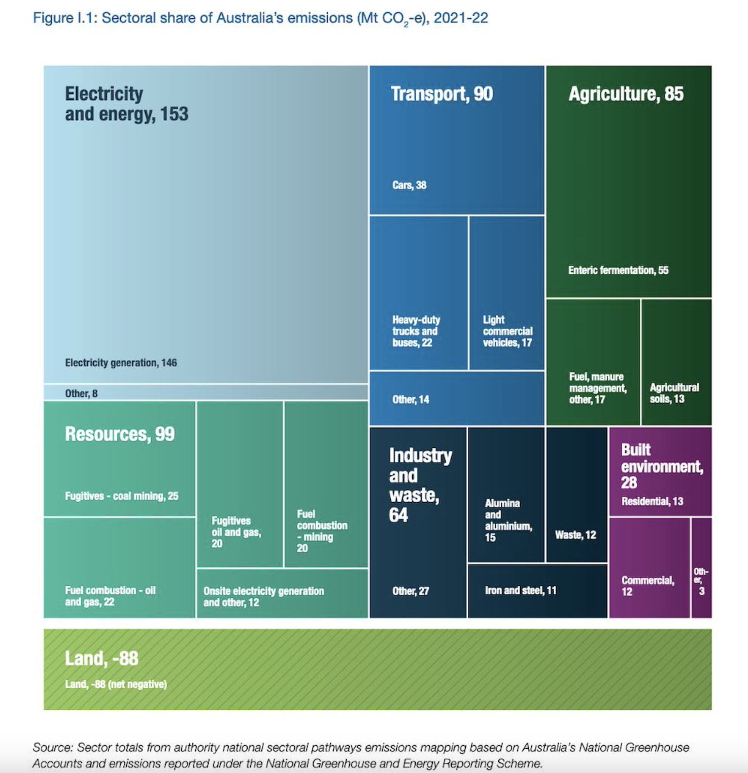 As for the resources sector, the CCA report notes that emissions from the resources sector were 99 Mt CO²-e in 2022, contributing to 23% of national emissions and dominated by fossil fuel combustion and fugitive emissions from the mining, oil and gas subsectors.