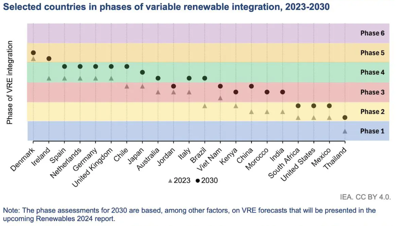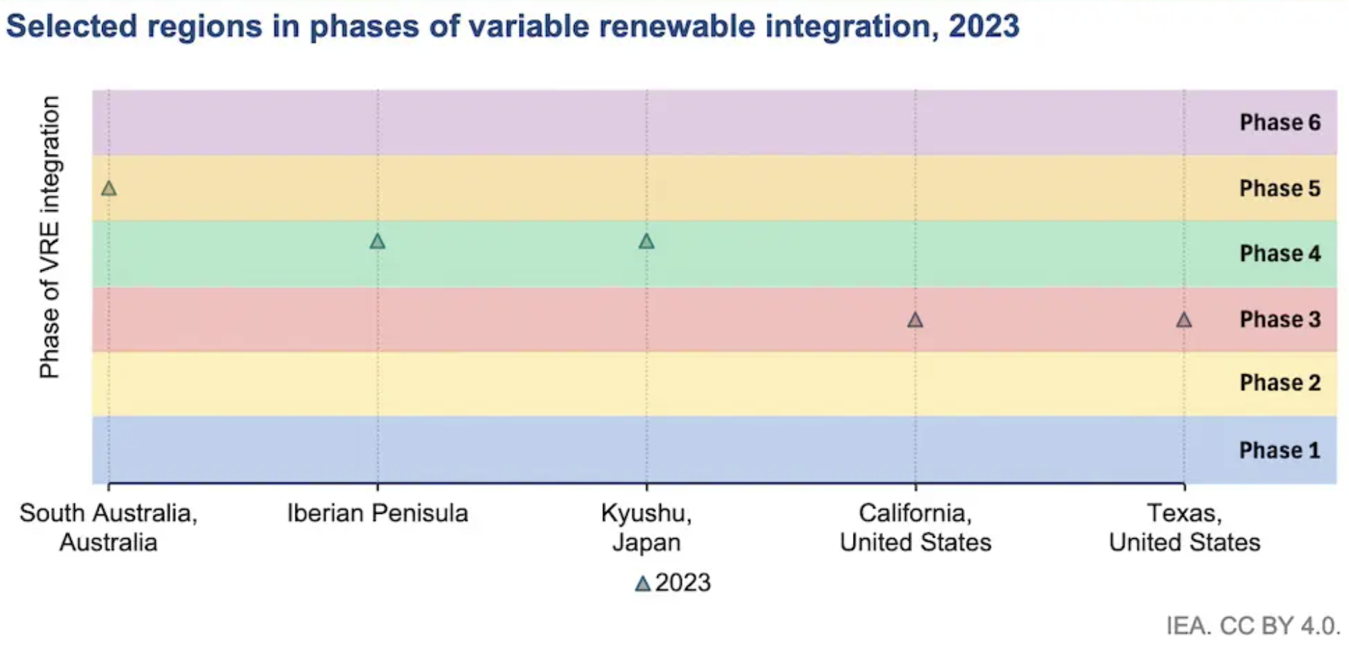 According to the IEA report, South Australia hit Phase 5 on its scale “for the first time” in 2023, after VRE generation provided at least 70% of its total generation during half of the year in 2023. It joins Denmark, which in 2022 became the first country to be classified as Phase 5.