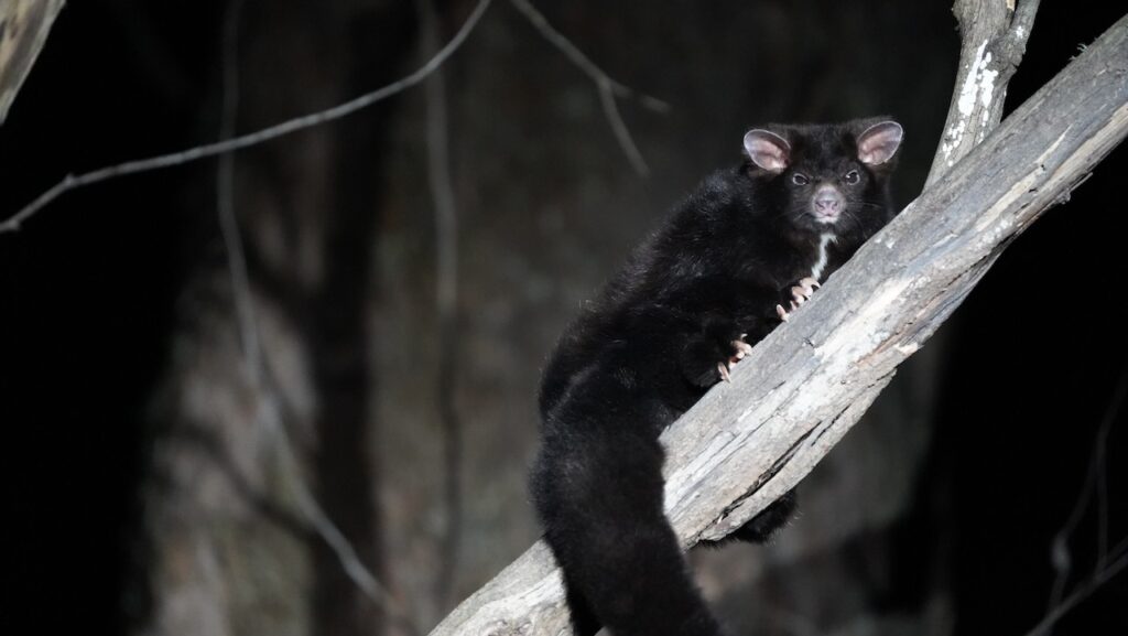 A juvenile greater glider explores an area about to be logged in Badja State Forest. Image: Wilderness Australia.