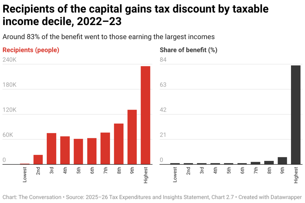 The benefits from the capital gains tax discount overwhelmingly benefit the wealthy and older people.