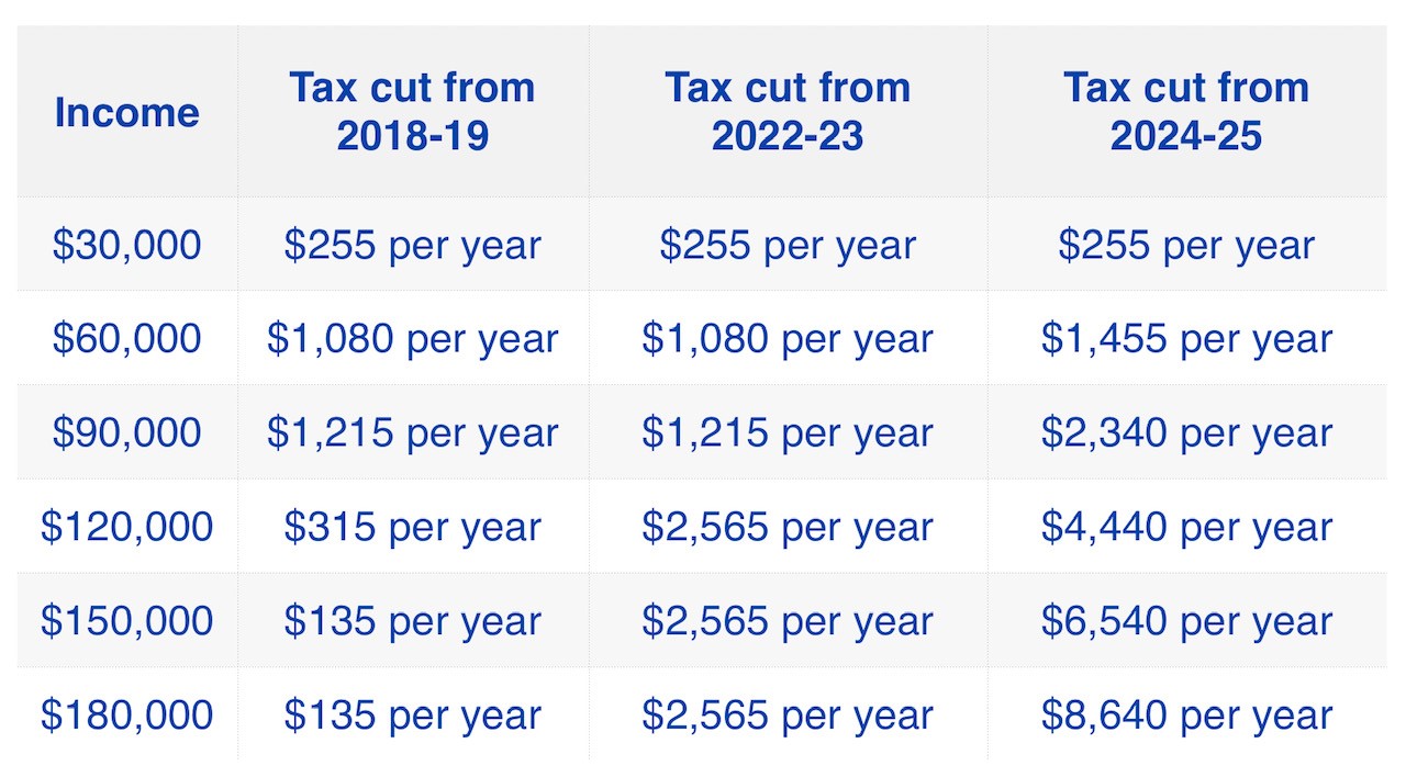 The “low income” tax offset applies to taxable incomes of up to $66,667. The “middle income” tax offset applies up to those earning $126,000 a year.