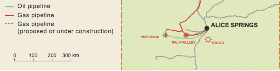 The $5 mn. pipeline branched off from the Palm Valley to Alice Springs Pipeline to two destinations, one of which was Pine Gap, and was completed by AP Group under contract to Envestra in 2011. In March 2011 the Defence Department signed a 15 year contract with Northern Territory Power and Water Corporation to supply natural gas to Pine Gap.