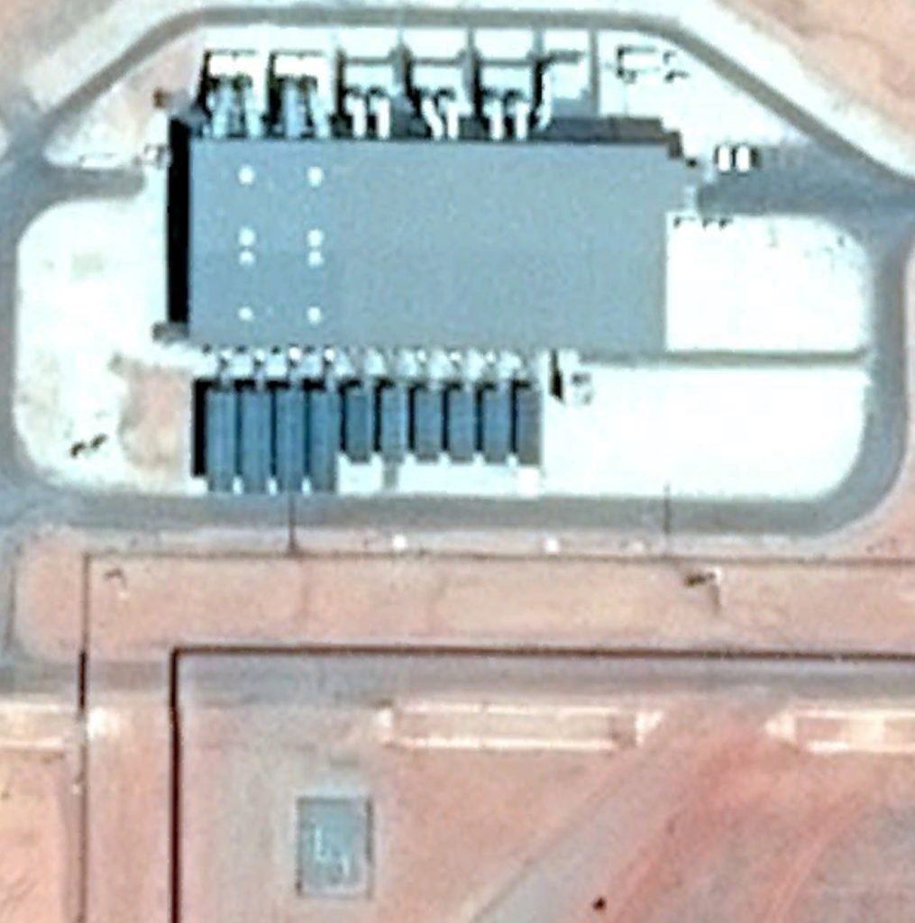 Overhead imagery shows the generator building expanding considerably between 2005 and 2013, from 1800 m2 to 2800 m2, and the six original diesel generators’ cooling radiators remaining in 2013, with four more, considerably larger, dual diesel-natural gas generators added.