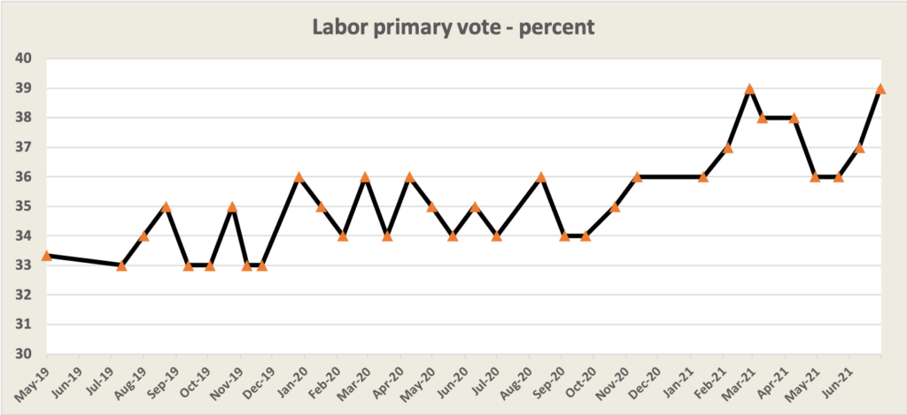 The media have reported on the latest Newspoll, emphasising Labor’s rise in TPP vote to 53:47, but not too much weight should be placed on one month’s opinion poll, and even less on TPP estimates. There does seem to be a trend in Labor’s favour however, up from a primary vote of 33 per cent in the 2019 election to around 38 per cent now.