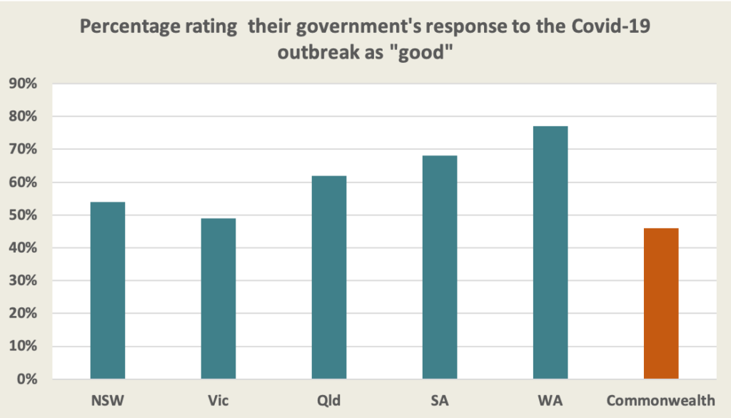 On the way governments have handled Covid-19, the states get a much better mark than the Commonwealth, as shown in the chart below.