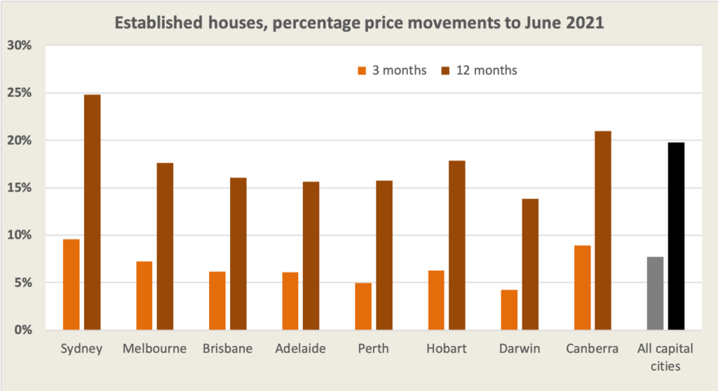 The first is of price movements for established houses, in the three months to June and in the year to June. (The rise in apartment prices has been a little slower.)
