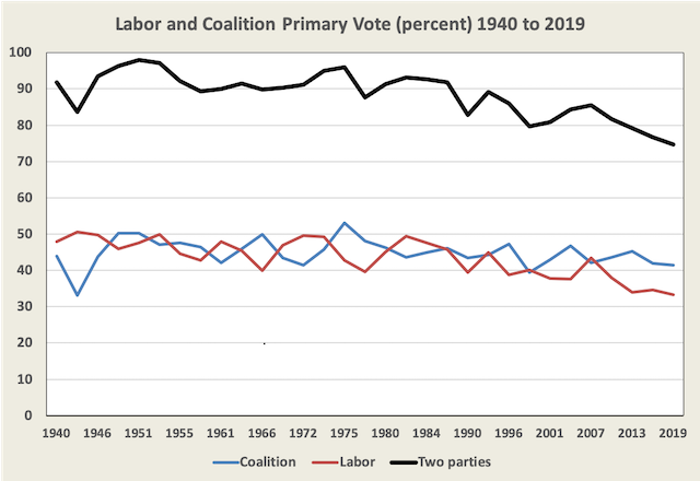 Writing in The Conversation, Adrian Beaumont of the University of Melbourne summarises what can be analysed about the federal election. His conclusion is that “the most important reason for the Coalition’s upset victory was that Morrison was both liked and trusted by lower-educated voters”. His article also brings to light analysis by Peter Brunt, revealing a significant difference in the two-party vote between those who cast pre-poll votes and those who voted on the day. The margin by which pre-poll voters favoured the Coalition was possibly as high as five percent, possibly explaining why exit polls strongly favoured Labor.