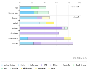 The demand for these minerals is growing rapidly. For instance, to get on the net zero by 2050 track will require six times more mineral inputs in 2040 than today; the demand for lithium could increase 40-fold. However, the longer-term supply of many minerals is far from secure, reliable or sustainable, and many come from a small number of producers (see graph below). Three countries produce three-quarters of the global output of lithium (Australia dominant), cobalt (Congo) and rare-earth elements (China). China is also dominant in the processing of several minerals including copper, nickel, cobalt, lithium and the rare-earths.
