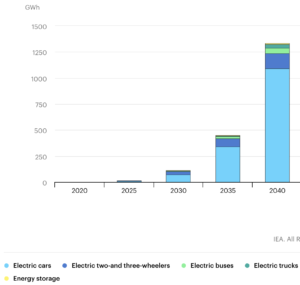 Amount of spent lithium-ion batteries from EVs and storage 2020-2040