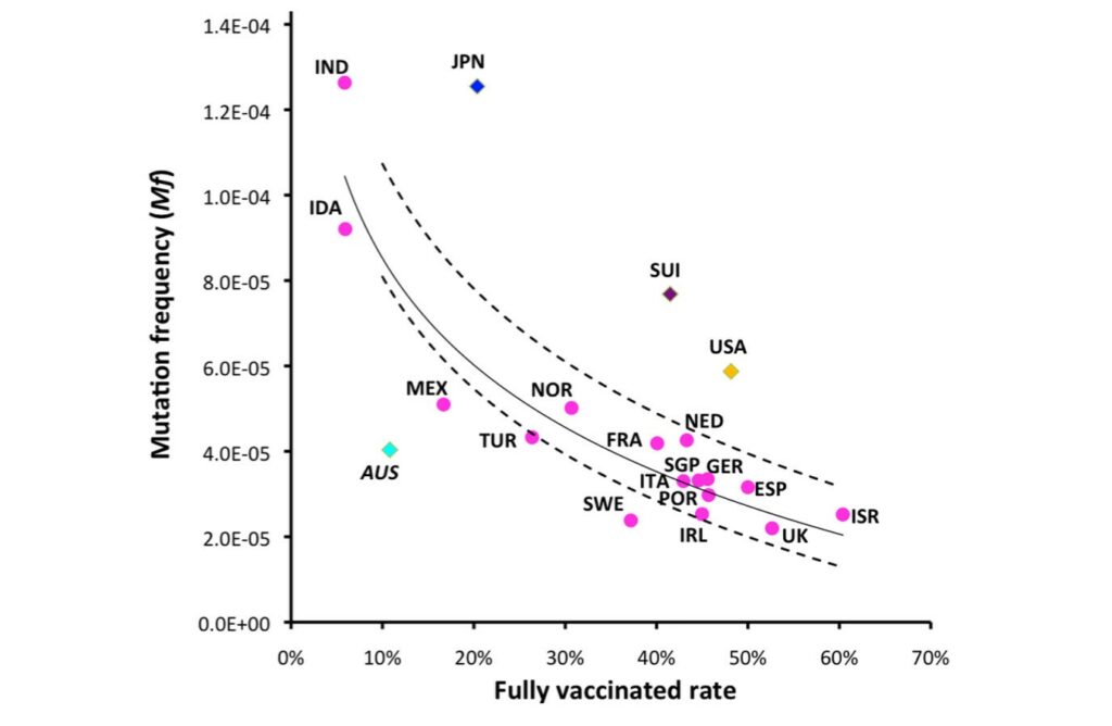 In my previous post, I had offered 10 powerful reasons why all of us must demand vaccine equity. One reason I had cited was uncontrolled outbreaks anywhere will generate more variants & mutant strains. Emerging research shows that mass vaccination is a powerful way of preventing new variants. In this study (pre-print), vaccination coverage rate was inversely correlated to the mutation frequency of the SARS-CoV-2 delta variants in 16 of 20 countries studied.