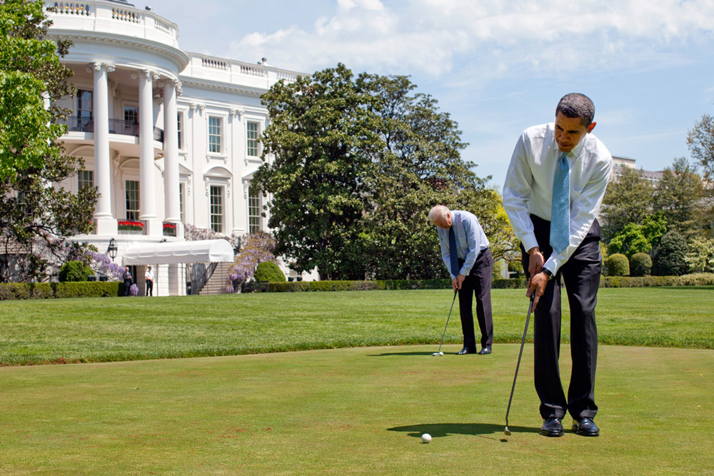President Barack Obama and then VP Joe Biden on the famous White House putting green (White House Image)